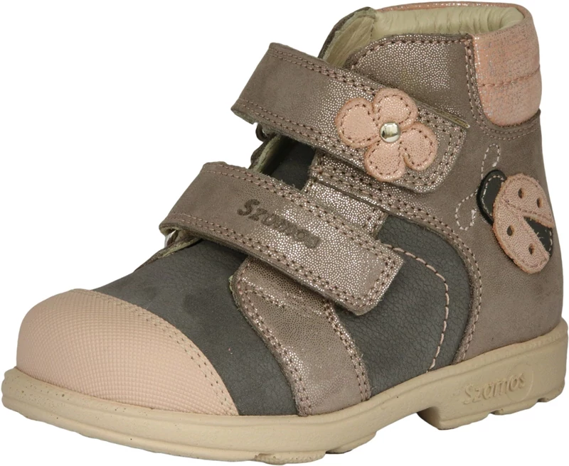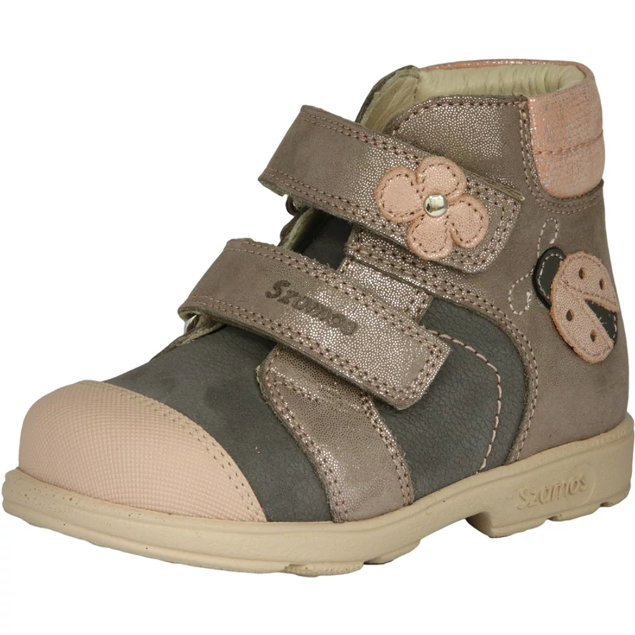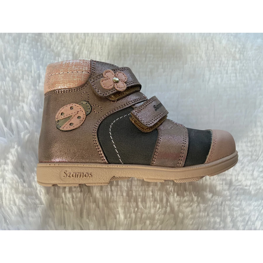Szamos supinált átmeneti magasszárú gyerekcipő lányoknak rózsaszín és szürke színben katica mintával 20-30